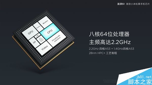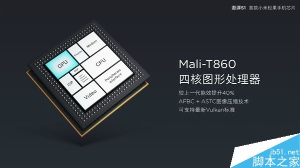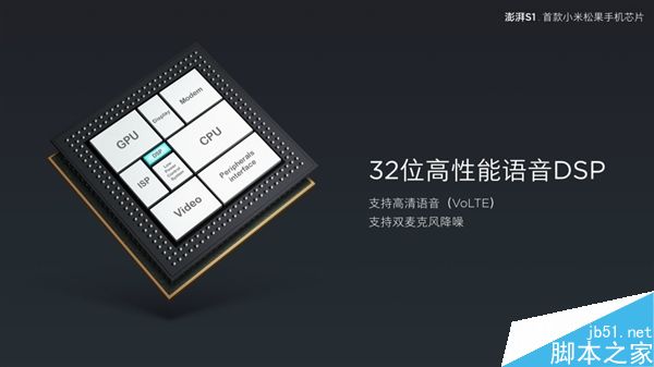 跟之前傳聞的一樣,澎湃S1是一款64位八核處理器(大小核架構(gòu)、4×A53大核+4×A53小核),最高主頻2.2GHz,內(nèi)置的GPU為MaliT860 MP4,提供32位語音DSP,支持VoLTE(號(hào)稱通話語音質(zhì)量提升100%)。