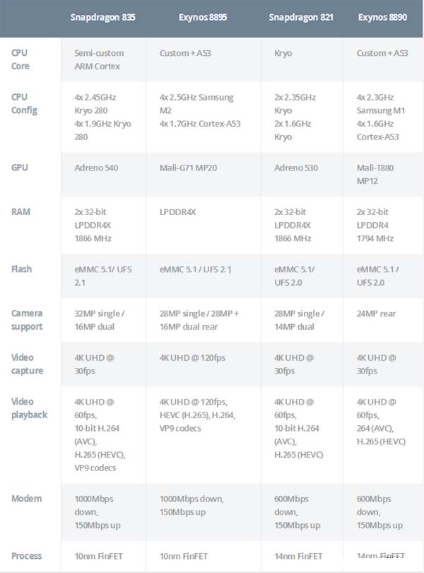 Exynos 8895是目前用于移動平臺的第三款10nm處理器前兩者是高通驍龍835和聯發科Helio X30,號稱性能提升27%、功耗降低40%。