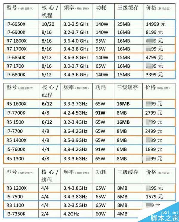 國行價格應該是根據歐版目前的泄露換算而來,最入門的R3 1100不到千元,最高的R7 1800X的只有i7-6900K的一半。
