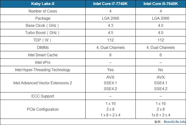 好吧,接口的問題就說到這里,第一代的X299主板能玩多久都是Intel說得算。下面重點來關注i7-7740K和i5-7640K這兩款只有4個核心的至尊版i7。