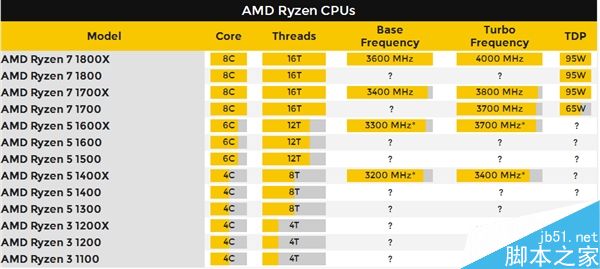 規(guī)格方面,兩部分爆料都證實了Ryzen 8核 20MB緩存(2+3),不過頂級的1800X沖上了4GHz,功耗95W,1700X 3.8GHz 功耗95W,1700僅有65W,主頻3.7GHz。
