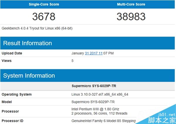雖說(shuō)AMD的Ryzen今年也有面向服務(wù)器的Naples家族,最高64核(32核雙路),但從GeekBench的跑分來(lái)看,距離Intel 56核雙路,僅1/3的性能。