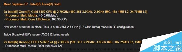 有知情網(wǎng)友拿到的成績(jī)顯示,多媒體處理能力是上一代18核E5-2697 v4的兩倍。