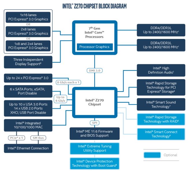 Z170與Z270方塊圖-可超頻、記憶體頻率提升、PCIe通道增加支援Intel Optane記憶體