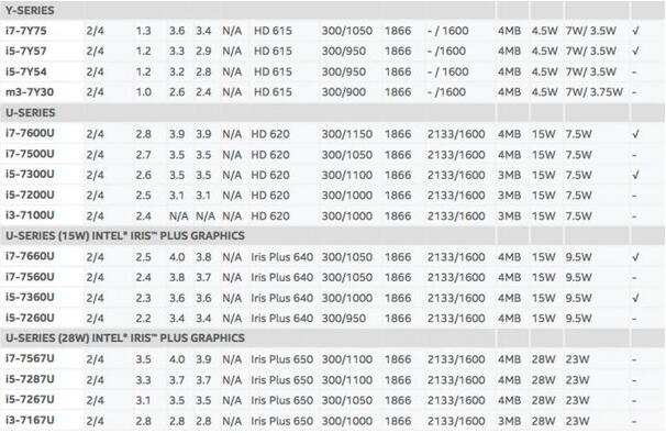 以下是英特爾第七代Kaby Lake處理器全家族一覽: