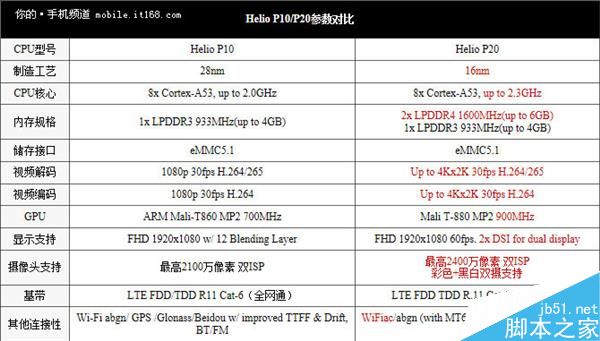 我們看一下Helio P20一些產品規格,可以看到Helio P20不僅使用上了16nm的制造工藝,其他多個方面相對上一代的Helio P10有了不少改進的地方。Helio P10采用28nm制造工藝,而P20一下子提升到了16nm,工藝提升不僅能讓CPU的功耗降低,也有利于CPU的頻率提升。可以看到P10和P20的CPU都采用8核A53架構,CPU核心是一樣的,但CPU頻率從P10的2.0GHz提升到了P20的2.3GHz,CPU的頻率提升直接帶來了更好的性能。