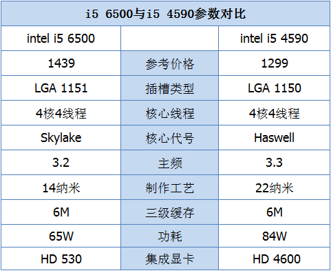 i5 6500比i5 4590價格貴了不到百元,但無實質(zhì)性的性能提升