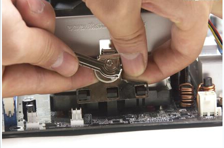 1、拆卸K8 CPU散熱器時首先要將金屬扣具拉起至另一端。