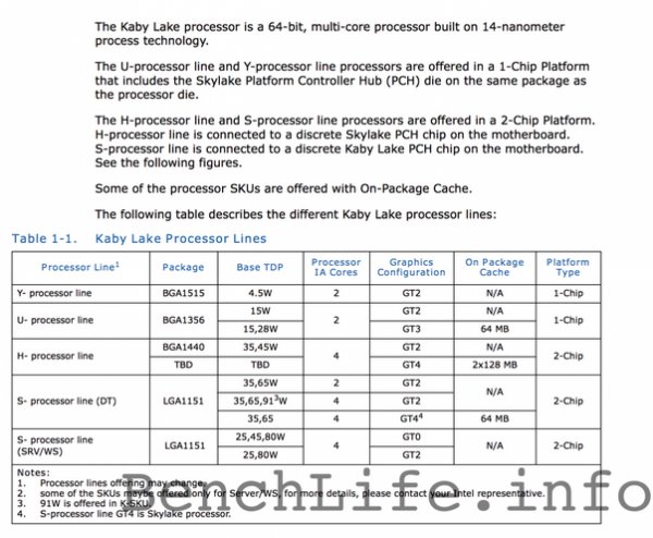 資料顯示,Kaby Lake同樣是基于14nm工藝,或有雙核和四核兩個版本,包括Y、U、H以及兩個S共計5個系列。其中,面向桌面版的S系列產(chǎn)品,將繼續(xù)沿用Skylake的LGA1151插槽。功耗方面,則是從4.5W到91W不等。