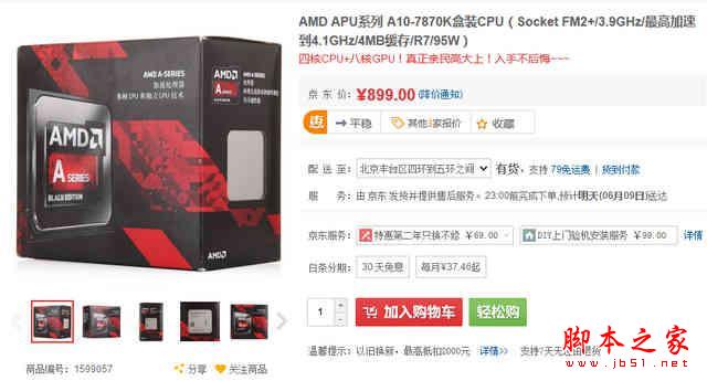 A10-7700K是Kaveri APU家族中定位僅次于7850K的一款APU,同樣是四核四線程設計,默認頻率3.5-3.7GHz,TDP熱設計功耗95W 。與A10-7850K相同的地方在于其內置的GPU為Radeon R7系列,擁有6個GPU核心,流處理器雖然有所縮減只有384個,但GPU性能同樣能滿足大部分的應用。目前A10-7700K已經突破600元的關口,參考售價是639元。