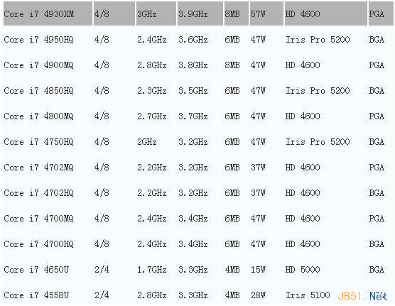目前市面上最為常見的IVB平臺i7處理器性能從低到高大致排列如下:i7-3689Y