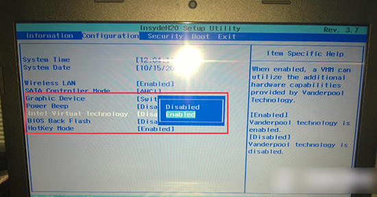 二、如果CPU支持,我們就可以進入bios開啟了。具體步驟是重啟電腦,然后按Del鍵進bios,以我自己的電腦bios為例。首先切到“Configuration”選項,然后找到“Inter Virtual Technology”項,將選項值改為“Enabled”即可。如圖。