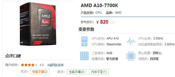 A10-7700K是AMD今年推出的旗艦級(jí)APU處理器,默認(rèn)主頻高達(dá)3.4Ghz,并且擁有4M二級(jí)緩存,原生四核四線(xiàn)程,采用最新的FM2+接口,適合搭配FM2+接口的主板。