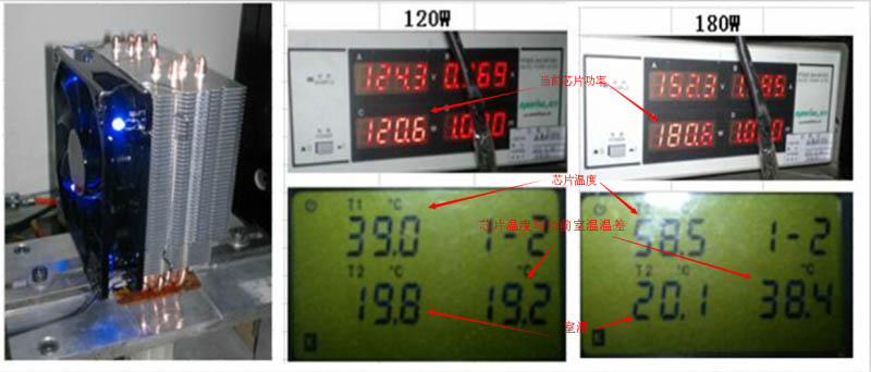 儀器用的是最專業(yè)的儀器,測試也是盡可能的模擬散熱器實際工作過程中的環(huán)境來進行測試,本次測試主要測試了兩款散熱器分別在120W和180W時的散熱效果,接下來請看測試過程。