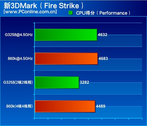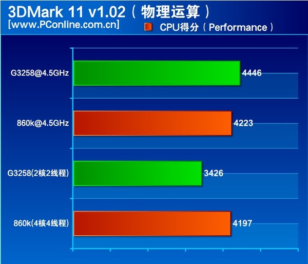 測試小結:3DMark系列能全面挖掘CPU的潛力,已經成為考量整機性能的一個重要指標,我們選擇其中的物理運算部分進行測試,單純地對CPU性能進行對比。默認頻率下對奔騰的優勢還是比較明顯,但是在超頻后,由于存在一定幾率的掉頻,此時的AMD 新速龍四核只和奔騰互有勝負打成平手。