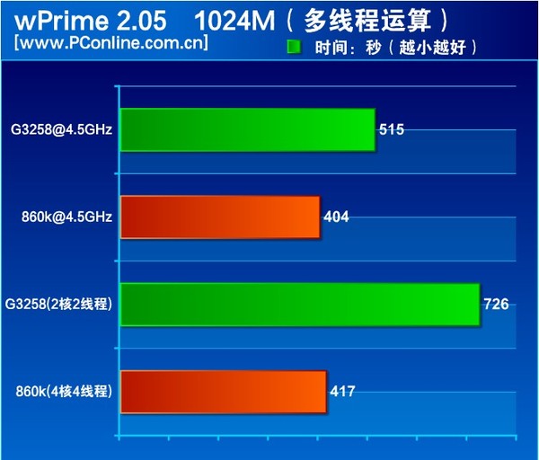 測試小結:Fritz Chess和wPrime是測試CPU多線程性能的代表性軟件,對于先天不足的奔騰來說,落后是正常的情況。畢竟新速龍是4核4線程的。