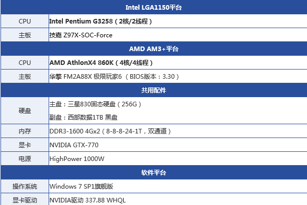 AMD速龍X4 860K測試配置平臺