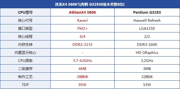 AMD速龍X4 860K與Intel奔騰G32580參數對比