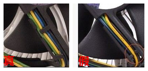 9、散熱器風扇,一眼可以看出,假貨散熱器風扇沒有給導線作為規定的卡子,這是真品的必需的裝備。而真品,對于細節從不含糊,做工很精準。