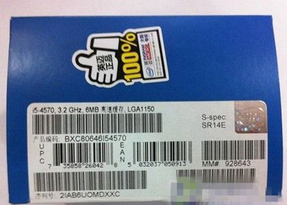 2、包裝上的標貼。市面上的處理器都是密封的,為了更換方便,我們先不打開包裝,先看看外面的序列號進行判斷。首先,盒裝序列號上面都有一個標簽標注了處理器的參數型號,還有序列號和其他碼數。如下圖所示。如果購買的處理器不是這樣的標簽,只是兩個封條,應該就是翻新的。