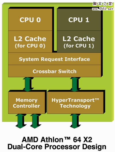 AMD推出的Athlon 64 X2是由兩個(gè)Athlon 64處理器上采用的Venice核心組合而成,每個(gè)核心擁有獨(dú)立的512KB(1MB) L2緩存及執(zhí)行單元。除了多出一個(gè)核芯之外,從架構(gòu)上相對于目前Athlon 64在架構(gòu)上并沒有任何重大的改變。