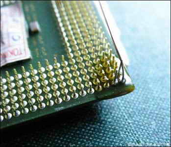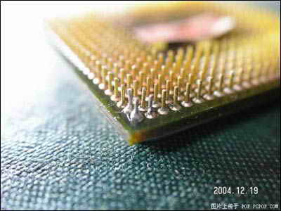 就這樣一塊破碎的“芯”被送到我家。這是一顆Celron 1.7GHz,已經第二塊了,感覺便宜貨就是受人欺負。斷針的位置位于右上角,看起來像是被菜鳥強插的結果-_-!!。(小編自己就如法炮制的搞壞了一塊P4 3.2GHz +_+)