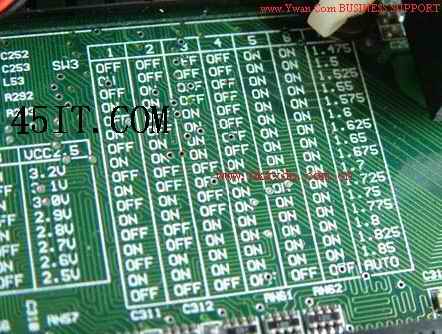 一般而言,大部分高品質主板上一般都采用純跳線方式進行超頻,比如可以通過JCLK1跳線設定CPU外頻情況(如圖1)。設置標準可以參考主板PCB上的印刷表格說明,當然也可以查閱主板說明書。對于一些主板,還可能具有DIP超頻開關,以磐英EPOX EP-4SDA 主板為例說,在超頻之前,我們需要打開機箱,然后從主板PCB上找到一個印刷表格(如圖2),上面會有關于CPU條線設置的說明,這里會有CPU電壓的設置說明,然后找到對應的DIP開關(如圖3),根據你的CPU情況參照說明進行設置即可。
