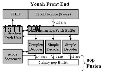 對(duì)比英特爾不同架構(gòu)中的提取指令/譯碼單元,可以看到Core要比Yonah和Pentium 4更加復(fù)雜 這種融合的好處是顯而易見的:首先,融合之后需要執(zhí)行的指令變少了,這等于直接提高了處理器的執(zhí)行性能;其次,亂序執(zhí)行可以因此變得更有效率,因?yàn)槿诤系倪^程實(shí)際上就是讓指令窗口檢查更多的程序代碼,更大限度地發(fā)現(xiàn)指令之間的并行性,從而提高處理器的執(zhí)行效率。不過頗具諷刺意味的是,從某種程度上來(lái)看這種x86指令的融合機(jī)制使得x86處理器更加RISC(簡(jiǎn)單指令集)化而不是CISC(復(fù)雜指令集)化。