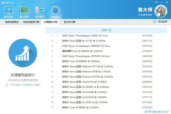 很多用戶朋友都十分信任魯大師,故提供魯大師版2019年7月CPU性能天梯圖為大家參考!
