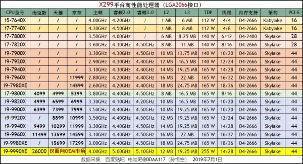錢多得不行的用戶可以考慮英特爾X299平臺搭配i9-9940X/9980XE等超級處理器,也可以選擇AMD家X399搭配TR2950X/2970WX/2990WX等方案。