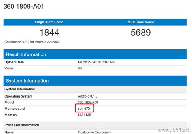 驍龍710其實就是此前網上曝光的驍龍670,在CPU跑分平臺Geekbench的數據庫中已有驍龍670的跑分數據,驍龍670單核得分1844分,多核得分5689分,跟驍龍660相比,單核提升了200分,多核基本持平。