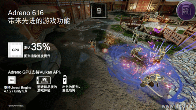 另外對于用戶感知來說,提升GPU的性能能夠明顯提升用戶體驗,目前對于國內市場來說,王者榮耀以及吃雞手游火熱,尤其是吃雞手游,許多都采用虛幻4引擎打造,對于手機的GPU性能要求更高,驍龍660 AP(Application Processor)部分中的GPU性能可能是木桶效應中最短的那塊木板,而驍龍710著重提升了GPU性能,高通宣稱驍龍710的Adreno 616GPU相比驍龍660的Adreno 512性能提升35%,提升幅度還是非常大的,不過目前還沒有驍龍710的量產機出來,GPU性能在日常游戲中到底有多大提升還有待測試。