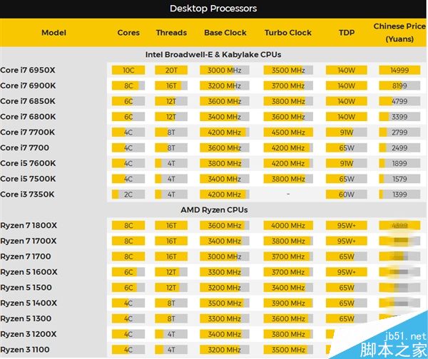 盡管Ryzen被i7-7700K這樣對手超越,但i7-6950X、5960X則直接墊底,依然證明AMD Ryzen的優秀。