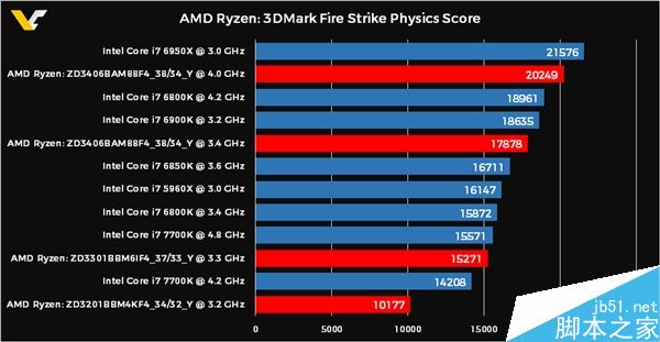 不過,上述Intel的成績來自TOMH的評測,如果從Futuremark官網的CPU成績來對比的話,AMD Ryzen甚至戰勝了i7-6950X,唯一一個破2萬分。