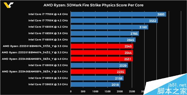 另外,VC還制作了單核性能的圖表,主要是考慮3DMark Fire Sttrike Physics對于多核過于青睞。