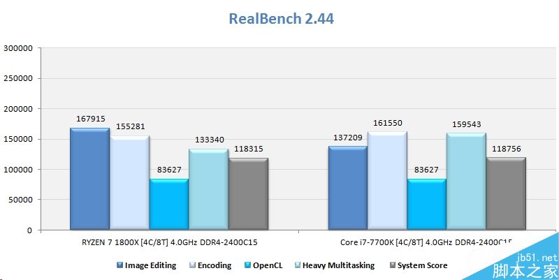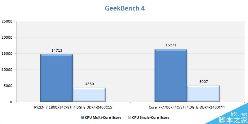 GeekBench 4:Ryzen單線程、多線程分別慢了12%、10%,多線程表現仍然相對一些。