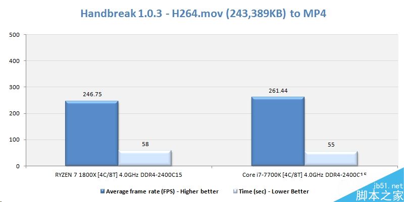 HandBrake:Ryzen又一次落后,大約5-6%。
