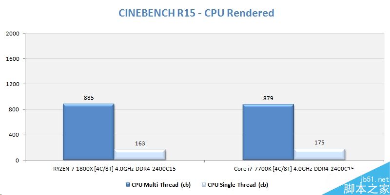 CineBench R15:Ryzen在單線程上慢了6.8%,但是多線程反超了同樣的6.8%,很有趣。