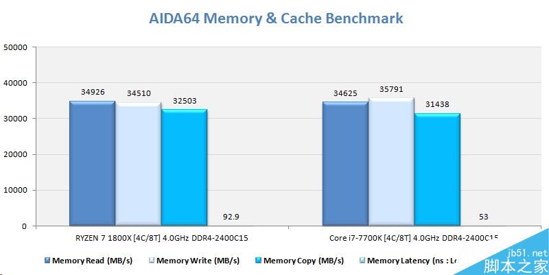Adobe緩存與內存:Ryzen讀取和拷貝性能稍有勝出,寫入略慢,但是延遲高了幾乎一倍,這個問題亟待解決。