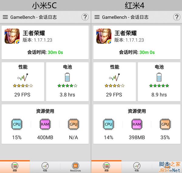 流暢度方面,軟件監測的結果顯示,小米5C運行30分鐘《王者榮耀》的平均幀數為29FPS,整個游戲過程并沒有明顯的卡頓現象。此外,搭載高通驍龍625處理器的紅米4同樣有不錯的表現,平均幀數也是29FPS,發熱也很低。但是,通過對比發現,紅米4的功耗明顯優于小米5C,原因是高通驍龍625功耗比澎湃S1好。