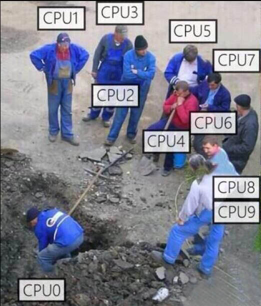 那你一定認為多核心多線程的處理器就是最好的了對吧?也不盡然。在任務分配上,工頭(程序)安排的是否合理,如何安排,也將很大程度上決定搬磚的效率(性能)。比如說無論你肌如海綿枯瘦如柴,還是壯如牛、身如鋼鐵(相當于處理器頻率高低,后面小編會說到),每小時搬10個磚頭,但是工頭認為目前運送磚頭的這個路線只能允許你一個人來回搬動,那么,他就指揮你一個人干,其他人再壯、再有力氣,也只能旁邊看著了。