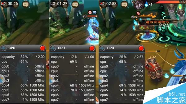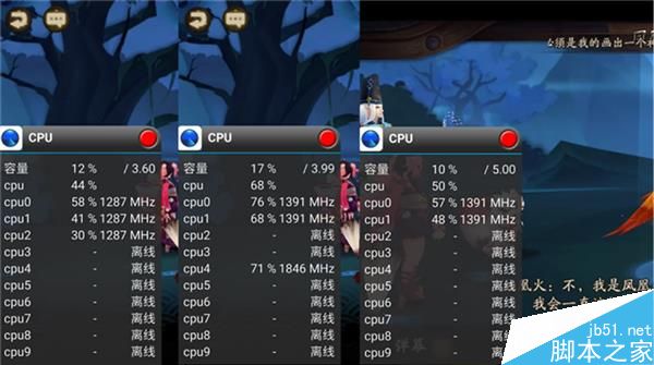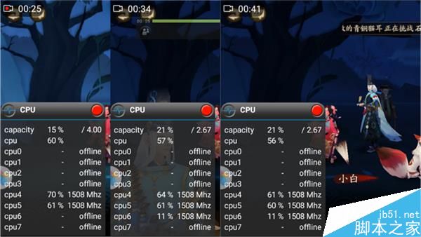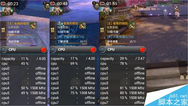 MT6750運行陰陽師時候類似Helio P10,無論是戰斗還是日常場景基本只有大核心處于工作狀態。