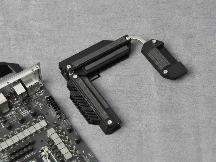 CPU供電區域設計了大尺寸的一體化散熱片,能夠為MOS管乃至周邊元器件進行散熱。