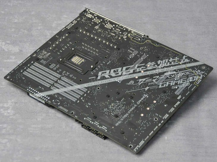 主板背面的PCB上面設計了ROG專屬的電競圖騰文字,玩家風格十足。