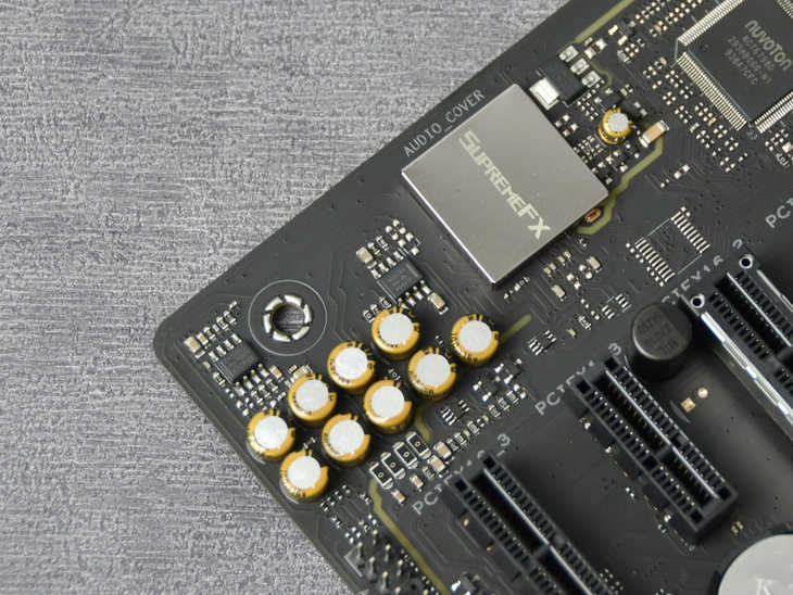 這款主板板載SupremeFX S1220A音頻芯片。借助一系列專業音頻設計,官方標稱其能夠提供120 dB立體聲播放輸出和113 dB SNR錄制輸入,音頻性能足以媲美很多獨立聲卡。