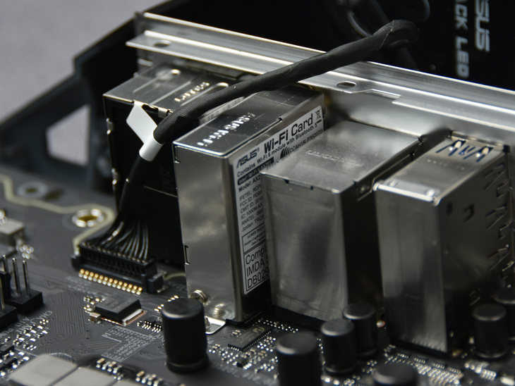 這款主板還板載了Intel WiFi 6 AX201 (802.11 ax)無線網卡,并且在I/O背板出設計了Wi-Fi 6天線模塊接口。Wi-Fi 6天線模塊可以按需選擇安裝,用于實現優異的無線連接功能。