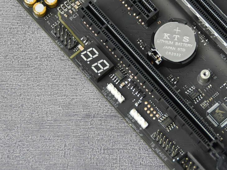 PCB左側邊緣設計了偵錯燈。偵錯燈傍邊是AURA SYNC接針。