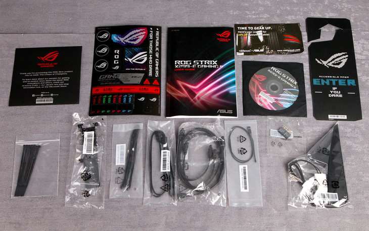 這款主板還附送了一大堆配件,將它們平鋪可以擺滿大半個桌面。