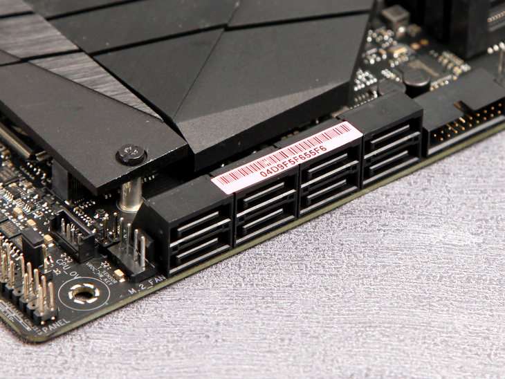 這款主板的八個SATA3.0接口全部位于南橋芯片的南邊。