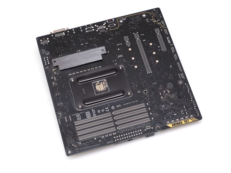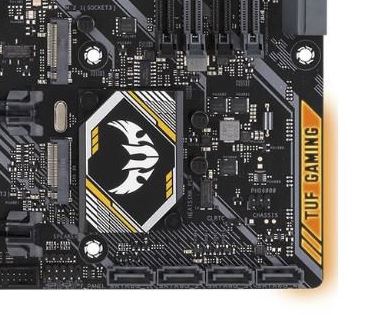 TUF B450M-PRO GAMING主板乍一看短了一截,不過整體上擴展性上并沒少很多。主板采用十相供電,并在頂部和側部都加入了更加厚實的VRM散熱片,甚至背后也有對應的散熱片。使用TUF軍規認證的TUF電感,5K黑金電容和TUF晶體管,可以穩定向CPU輸送電力。